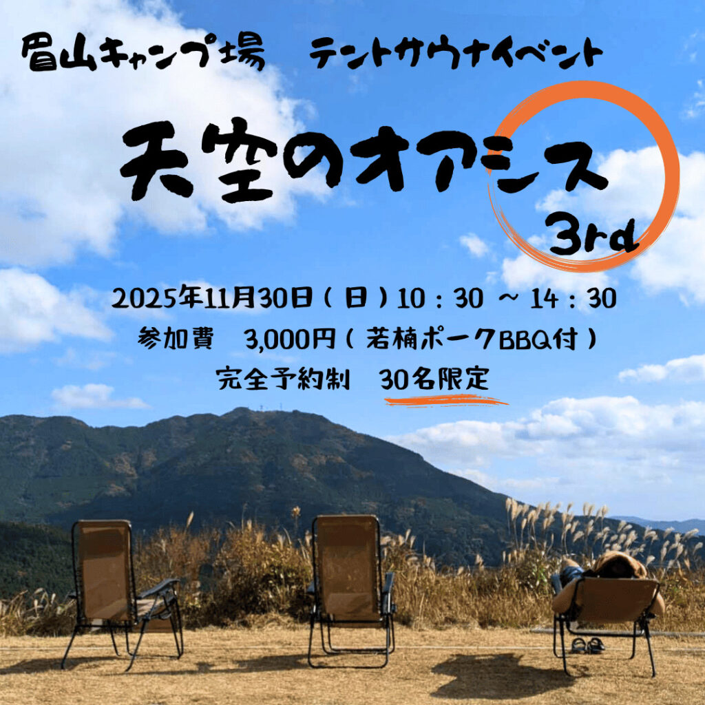 今年も、武雄市若木町にある武雄市眉山キャンプ場において、テントサウナイベントを開催します。